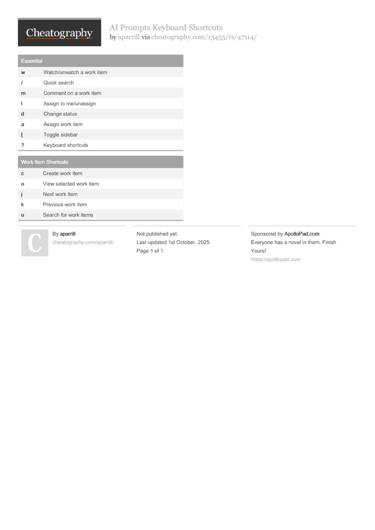 AI Prompts Keyboard Shortcuts (DRAFT) by aparrill