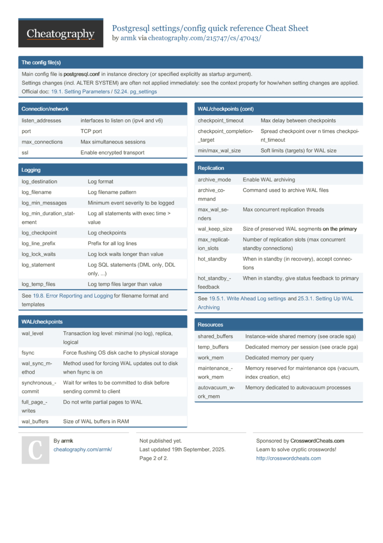 Official doc: 19.1. Setting Parameters / 52.24. pg_settings |