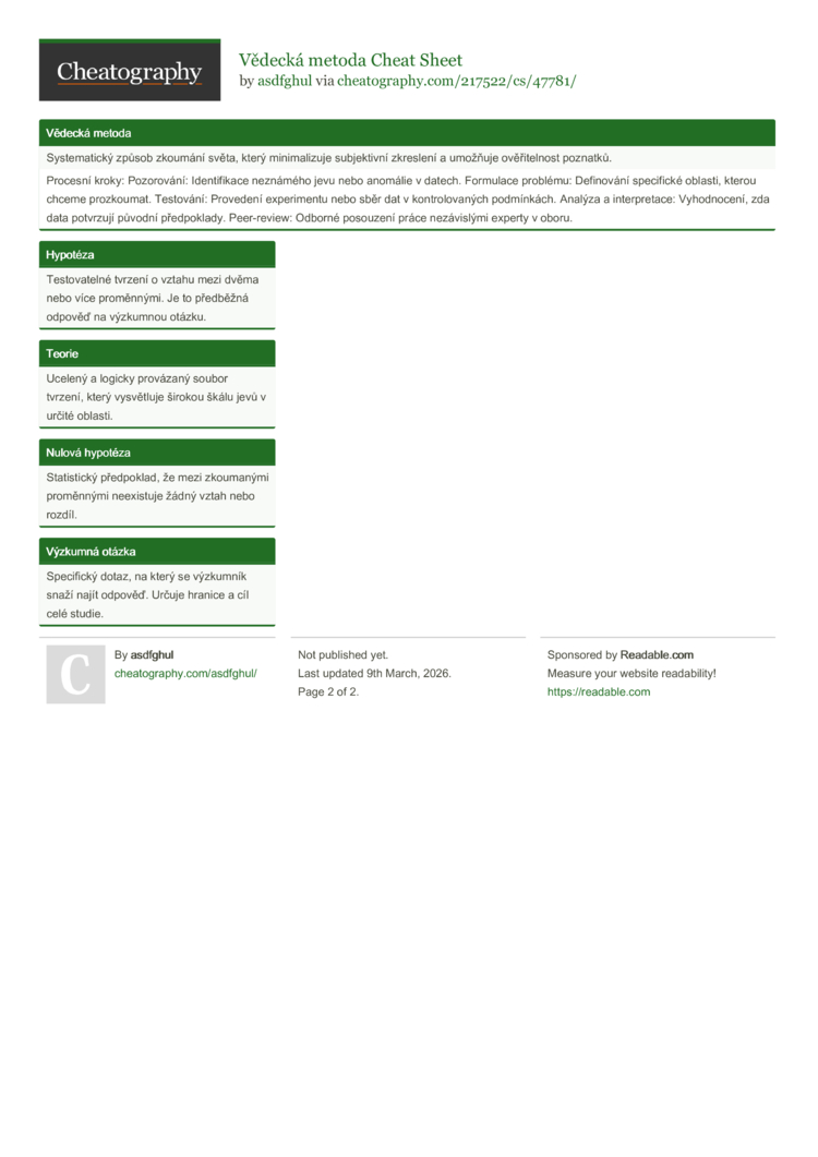 Procesní kroky: Pozorování: Identifikace neznámého jevu nebo anomálie v datech. Formulace problému: Definování specifické oblasti, kterou chceme prozkoumat. Testování: Provedení experimentu nebo sběr dat v kontrolovaných podmínkách. Analýza a interpretace: Vyhodnocení, zda data potvrzují původní předpoklady. Peer-review: Odborné posouzení práce nezávislými experty v oboru. |