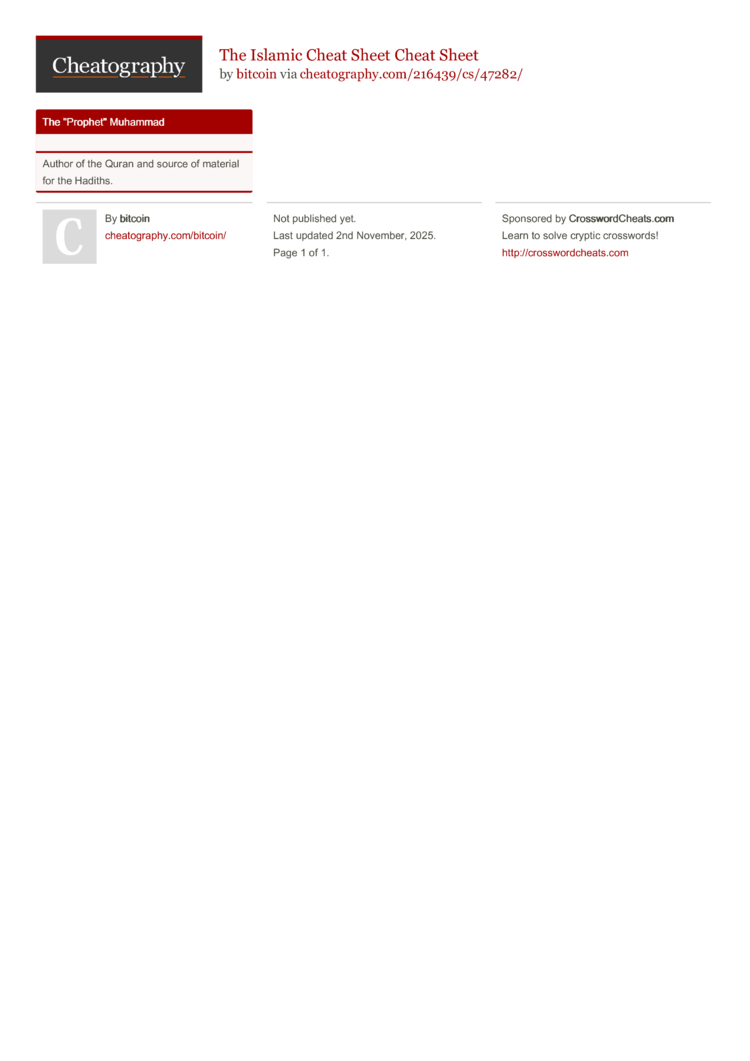 The Islamic Cheat Sheet Cheat Sheet (DRAFT) by bitcoin