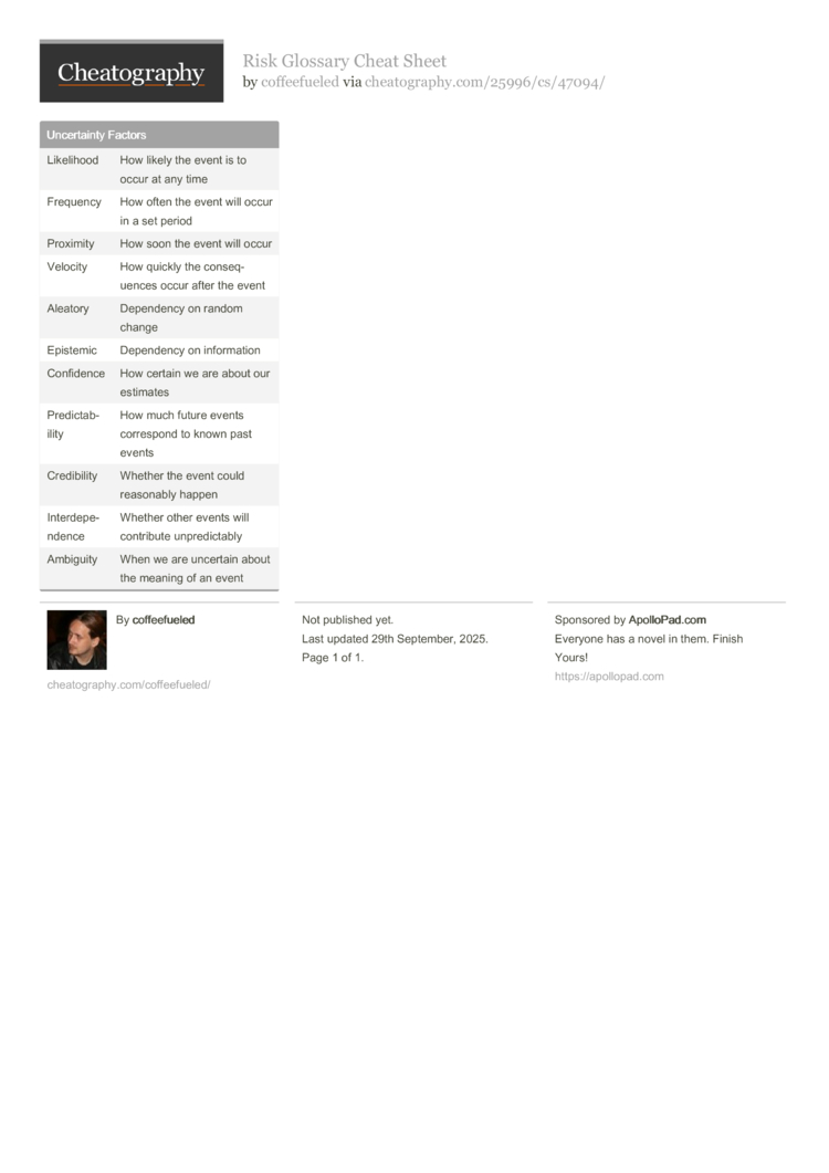 Risk Glossary Cheat Sheet (DRAFT) by coffeefueled