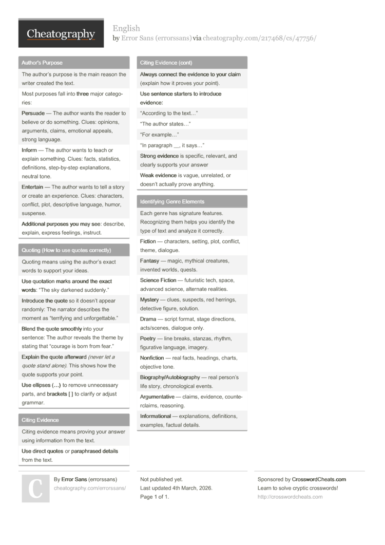 Each genre has signature features. Recognizing them helps you identify the type of text and analyze it correctly. |