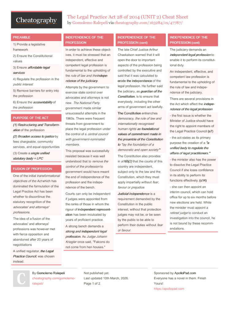 The late Chief Justice Arthur Chaskalson warned that it will open the door to important aspects of the profession being controlled by the executive and said that it was calculated to erode the independence of the legal profession. He further said the judiciary, as guardian of the Constitution, is to ensure that everybody, including the other arms of government act lawfully. |