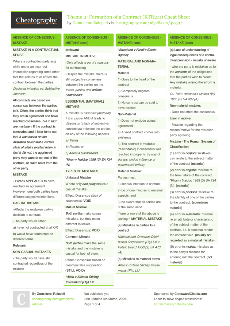 - where a party is mistaken as to the contents of the obligations that the parties wish to create. Any mistake arising therefrom is material. |