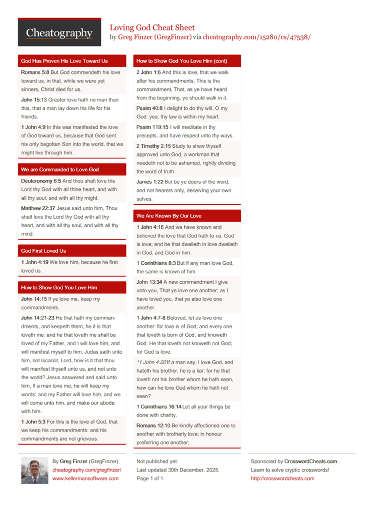 1 Corinthians 8:3 But if any man love God, the same is known of him. |