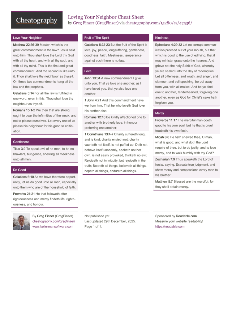 Galatians 5:14 For all the law is fulfilled in one word, even in this; Thou shalt love thy neighbour as thyself. |
