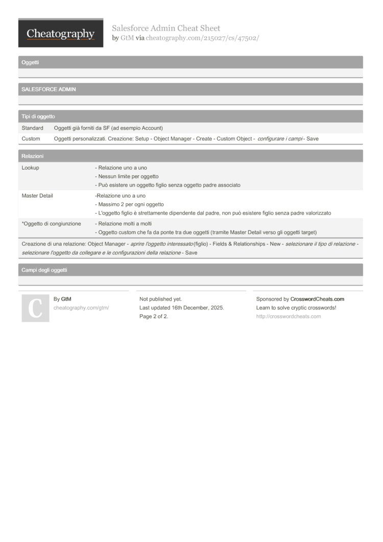 - Relazione molti a molti - Oggetto custom che fa da ponte tra due oggetti (tramite Master Detail verso gli oggetti target) |