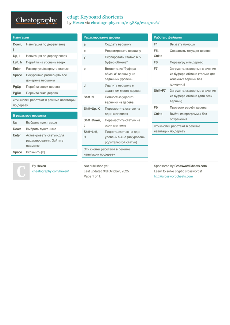 cdagt Keyboard Shortcuts (DRAFT) by Hexen