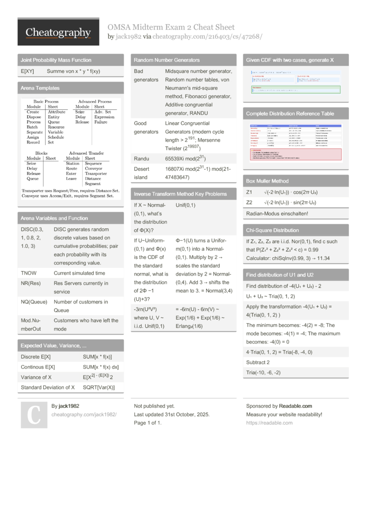 | Desert island | 16807Xi mod(231-1) mod(2147483647) |  Inverse Transform Method Key Problems