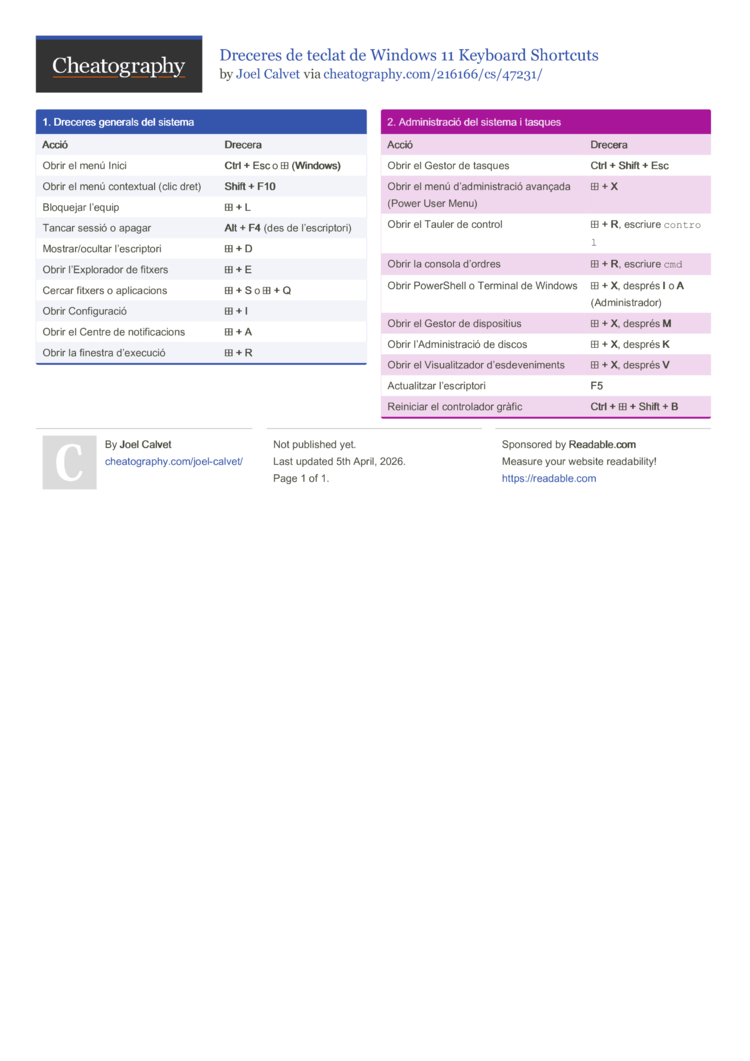 Dreceres de teclat de Windows 11 Keyboard Shortcuts (DRAFT) by Joel Calvet
