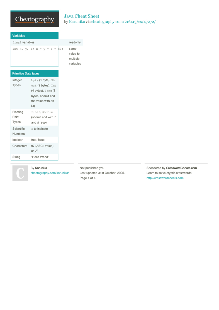 This is a draft cheat sheet. It is a work in progress and is not finished yet.