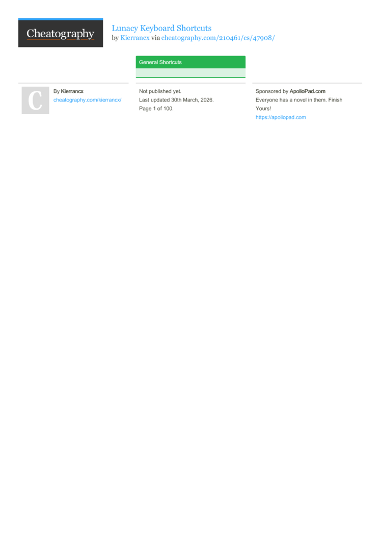 Lunacy Keyboard Shortcuts (DRAFT) by Kierrancx