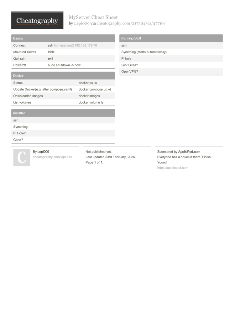 MyServer Cheat Sheet (DRAFT) by Lepi009