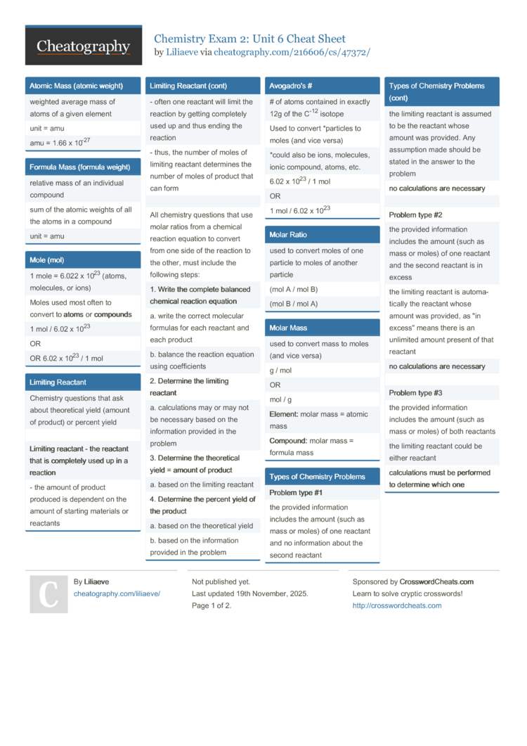 Cheat sheet for Chemistry Exam 2: Unit 6