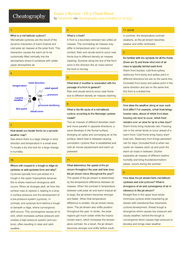 Be familiar with the symbols for all the fronts (there are 5) and know what kind of air mass is typically behind each front.