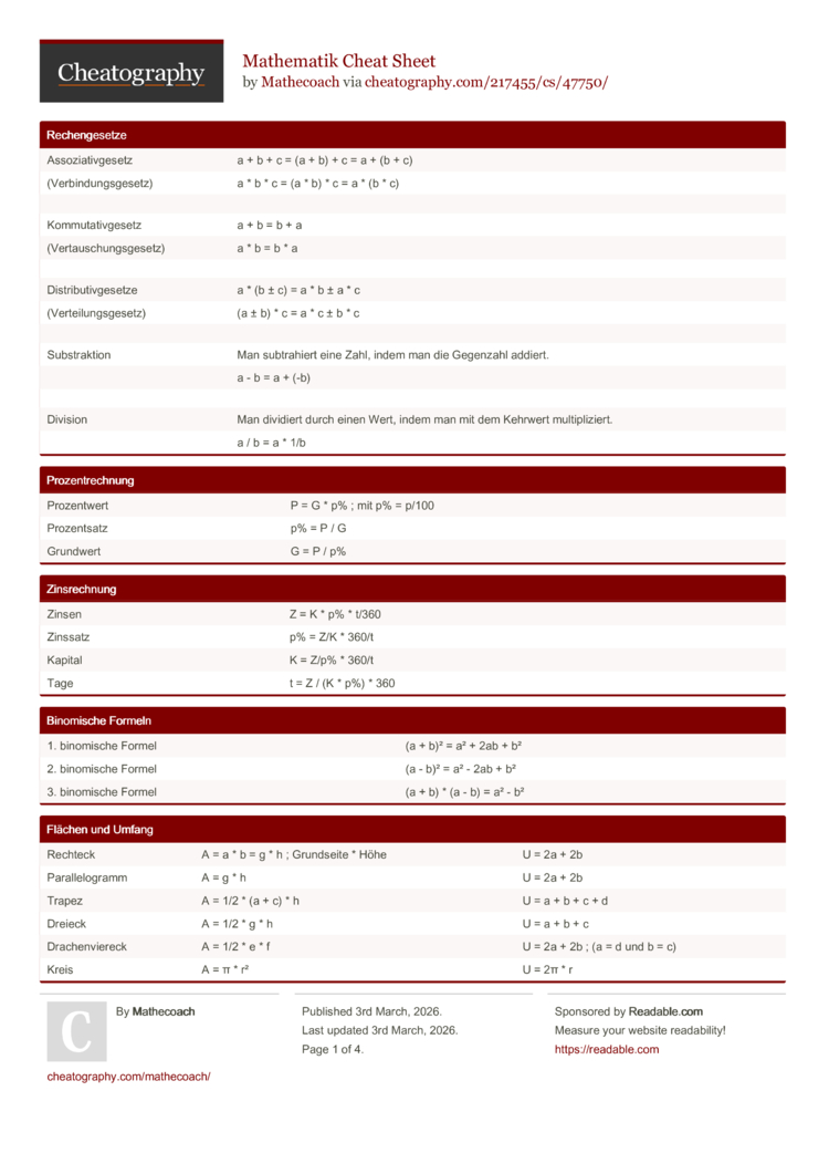 Mathematik Merkzettel