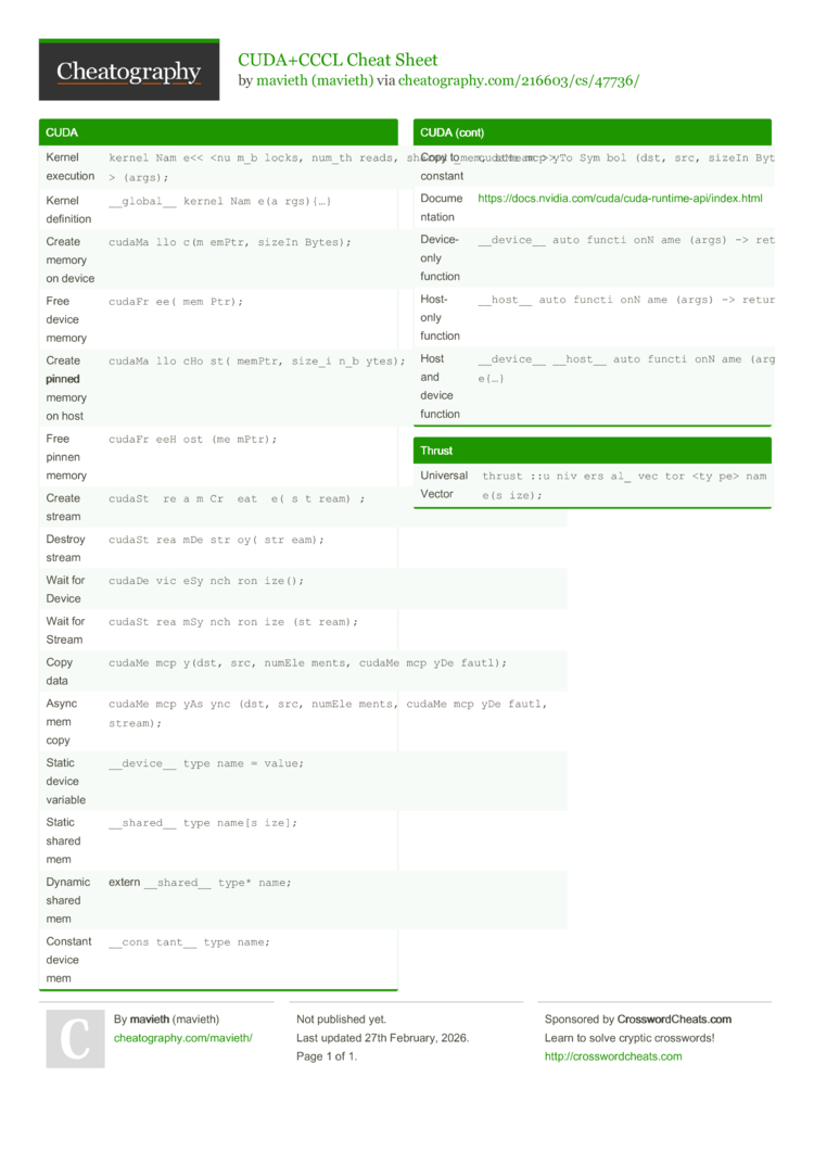 Important classes and functions in CUDA and CCCL.