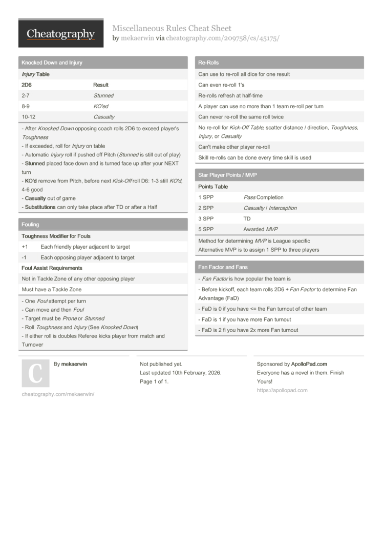 Miscellaneous Rules Cheat Sheet (DRAFT) by mekaerwin