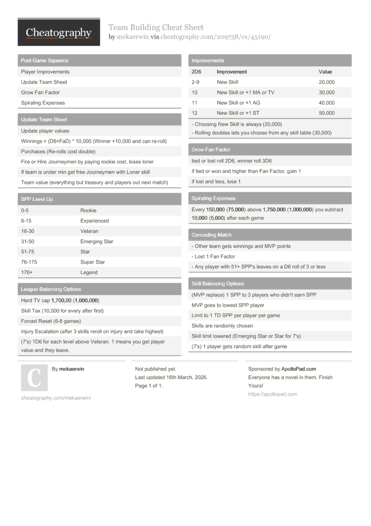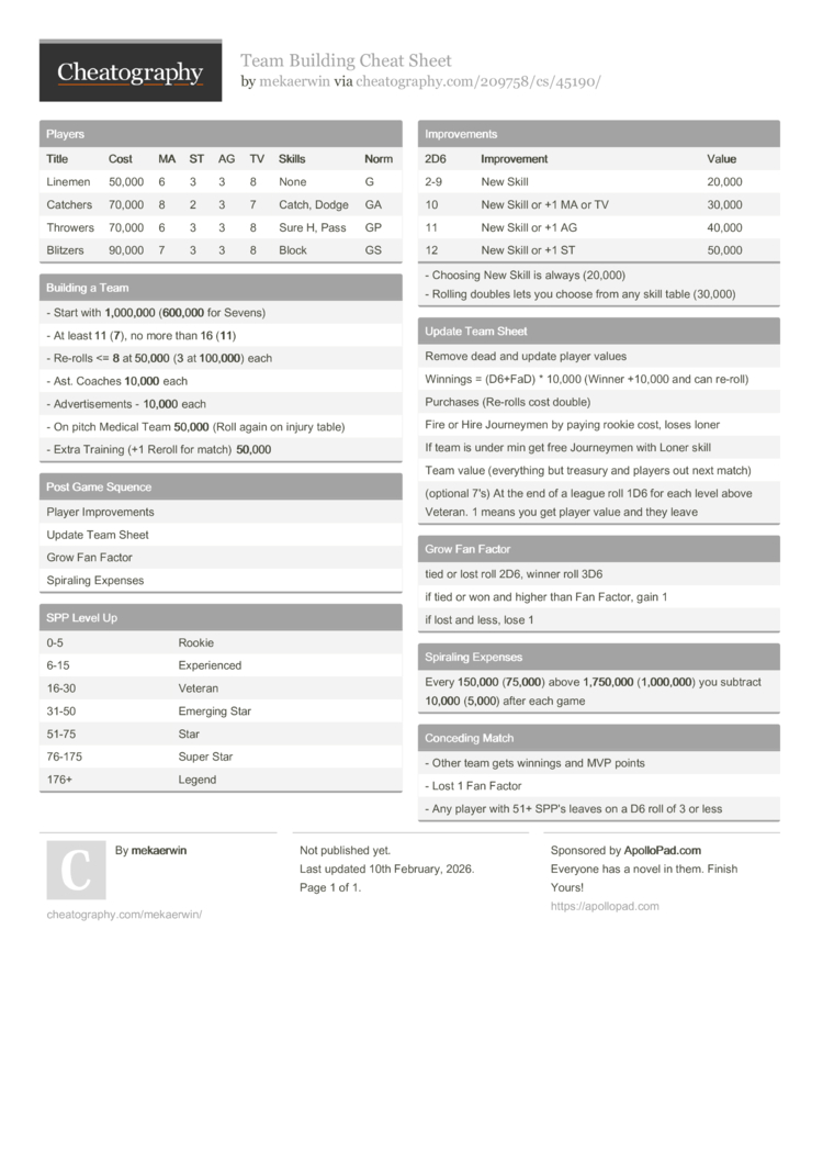- Any player with 51+ SPP's leaves on a D6 roll of 3 or less |