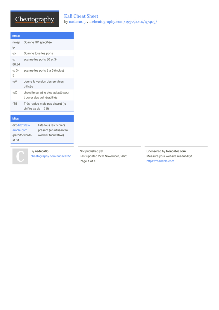 Kali Cheat Sheet (DRAFT) by nadaca05