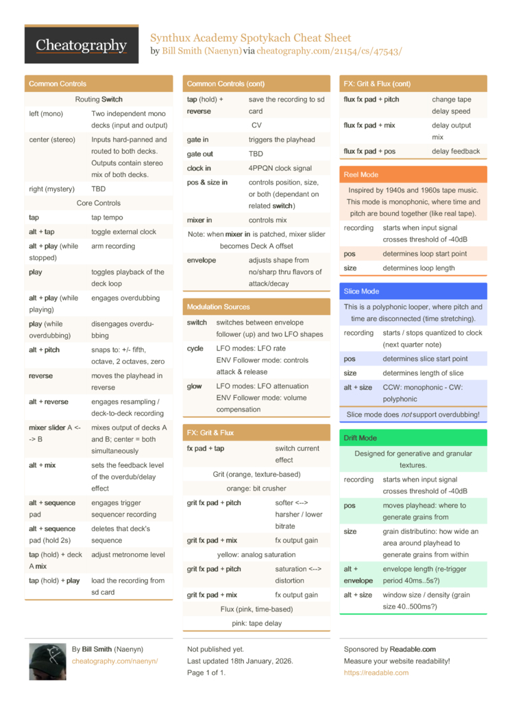Synthux Academy Spotykach Cheat Sheet (DRAFT) by Naenyn