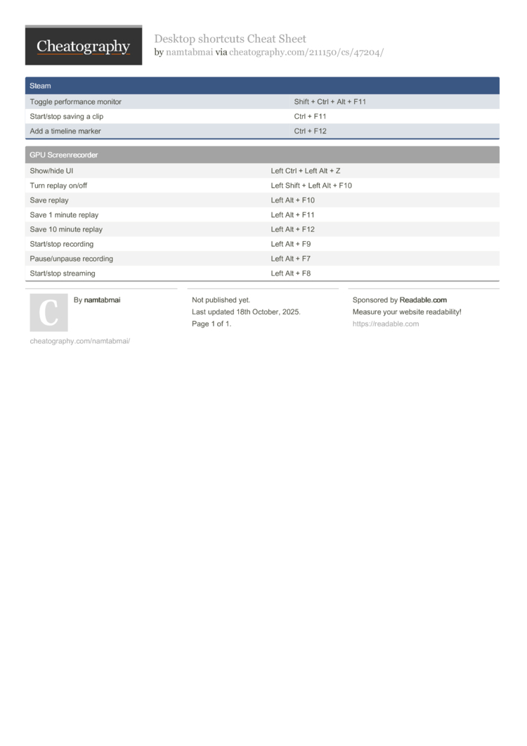 Desktop shortcuts Cheat Sheet (DRAFT) by namtabmai
