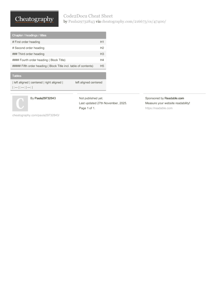 Code2Docu Cheat Sheet (DRAFT) by Paula29732843