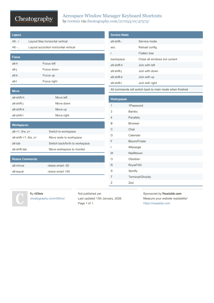 Aerospace Keyboard Shortcuts for Reference