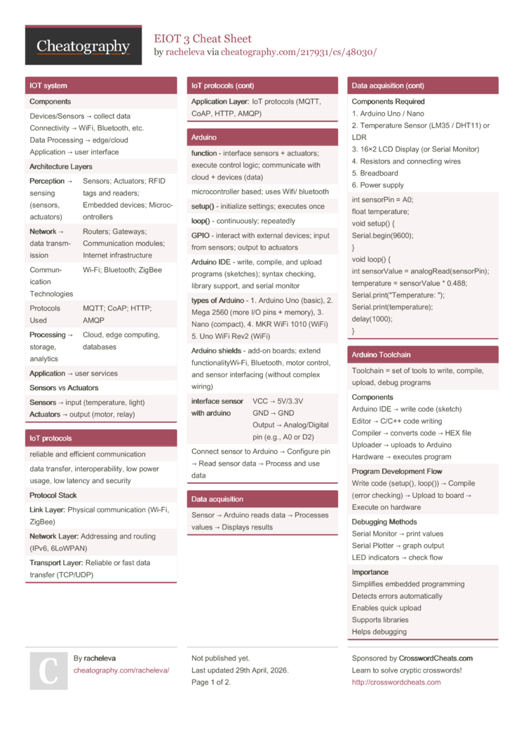 Sensors; Actuators; RFID tags and readers; Embedded devices; Microcontrollers |
