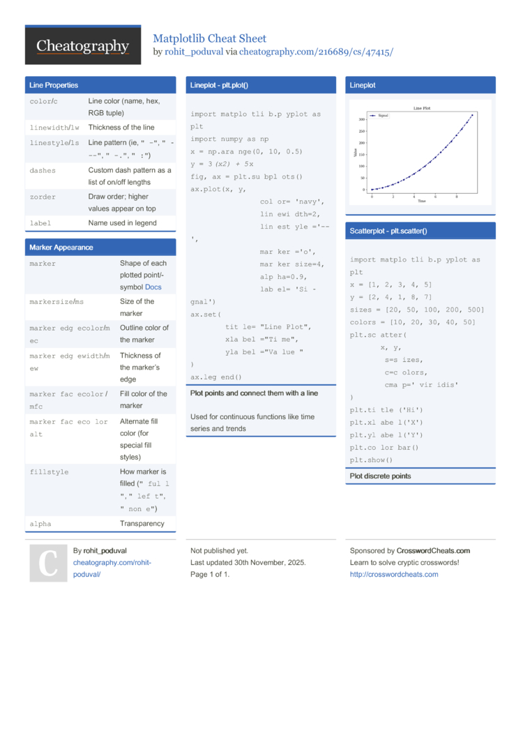 A definitive cheatsheet/reference guide for Python's matplotlib library.
