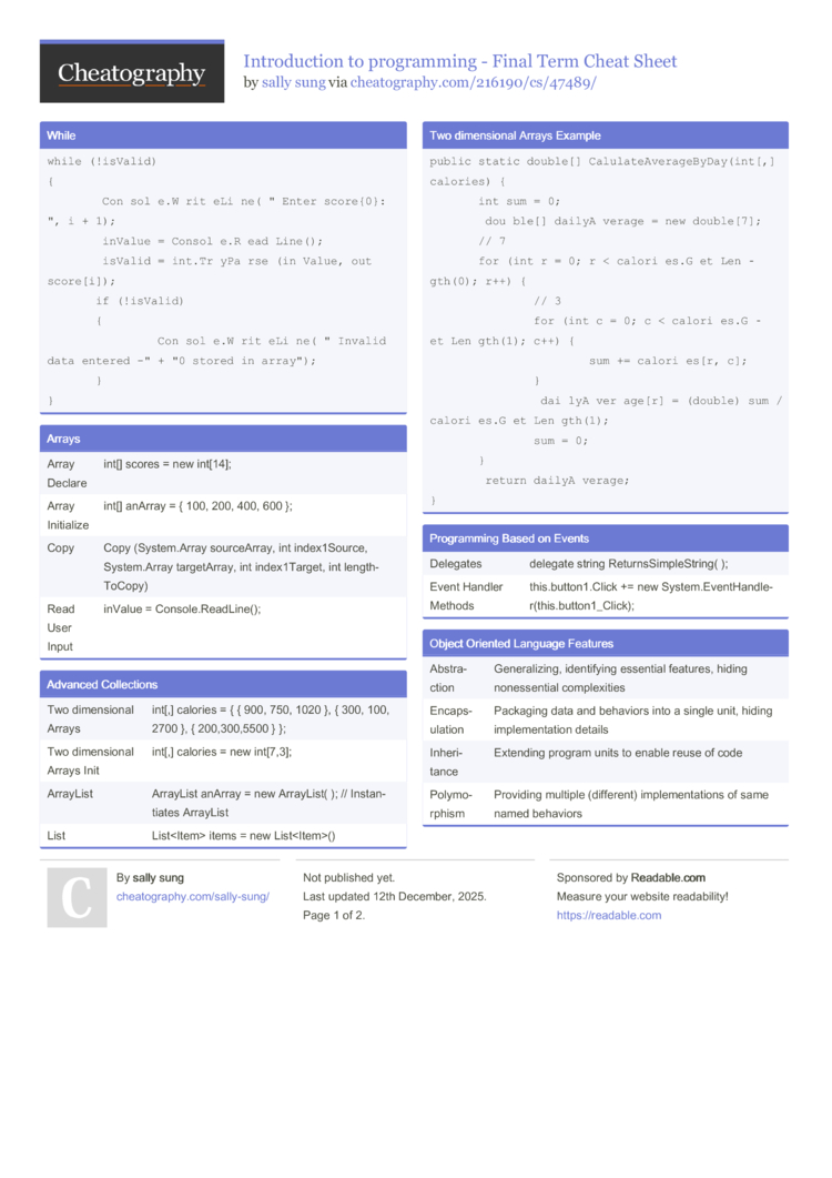 Two dimensional Arrays |