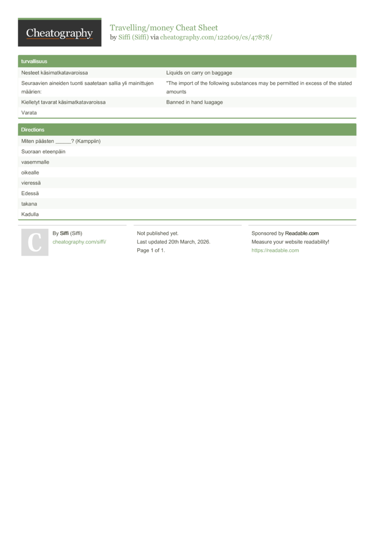 Travelling/money Cheat Sheet (DRAFT) by Siffi