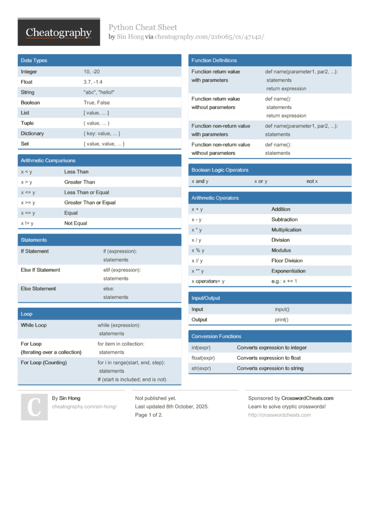 This is a draft cheat sheet. It is a work in progress and is not finished yet.