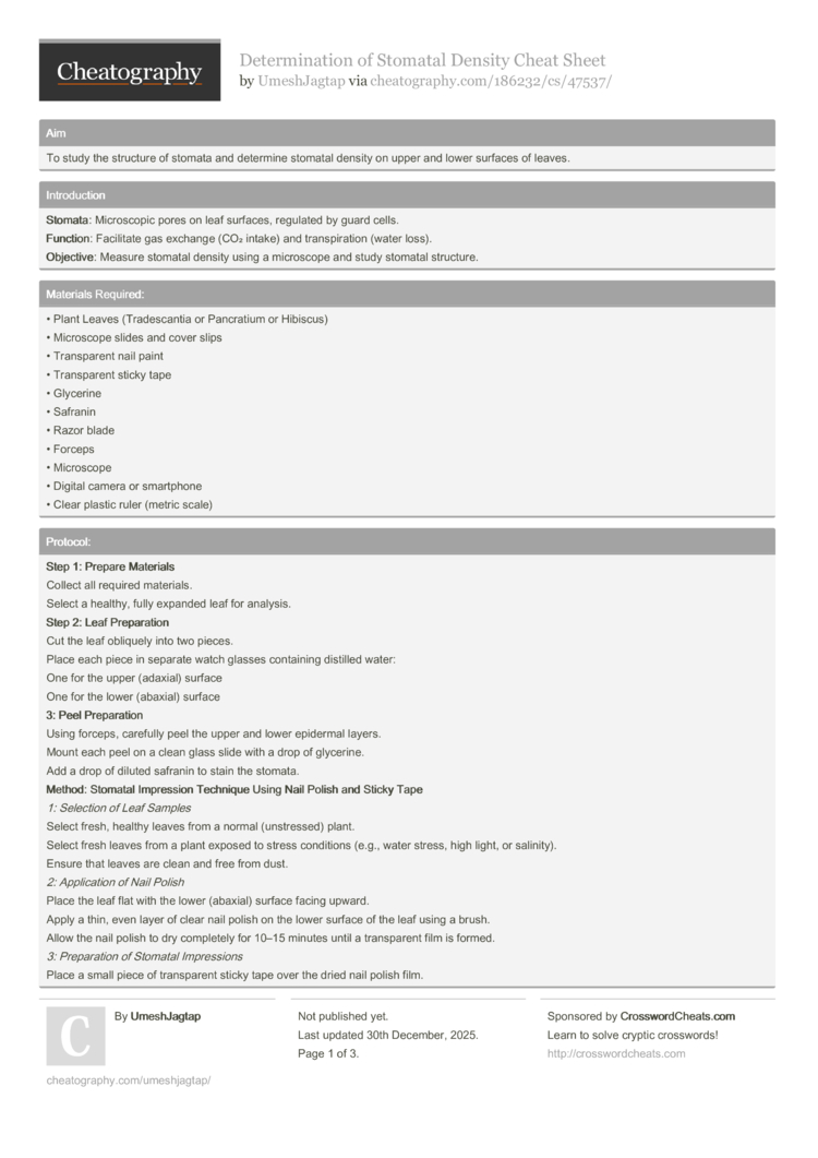 • Examine the size, shape, and distribution of stomata under the microscope.