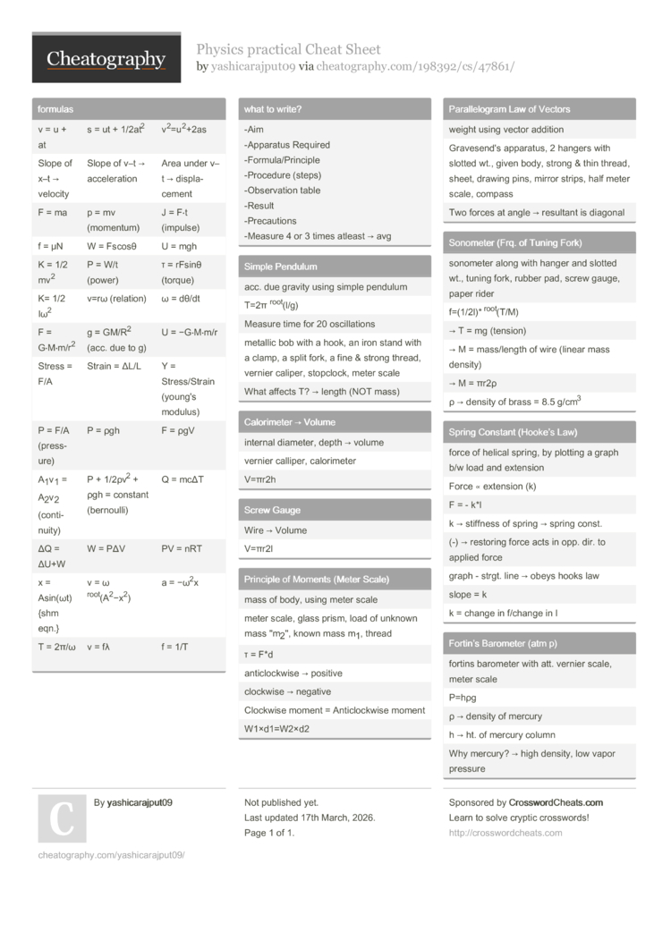sonometer along with hanger and slotted wt., tuning fork, rubber pad, screw gauge, paper rider |